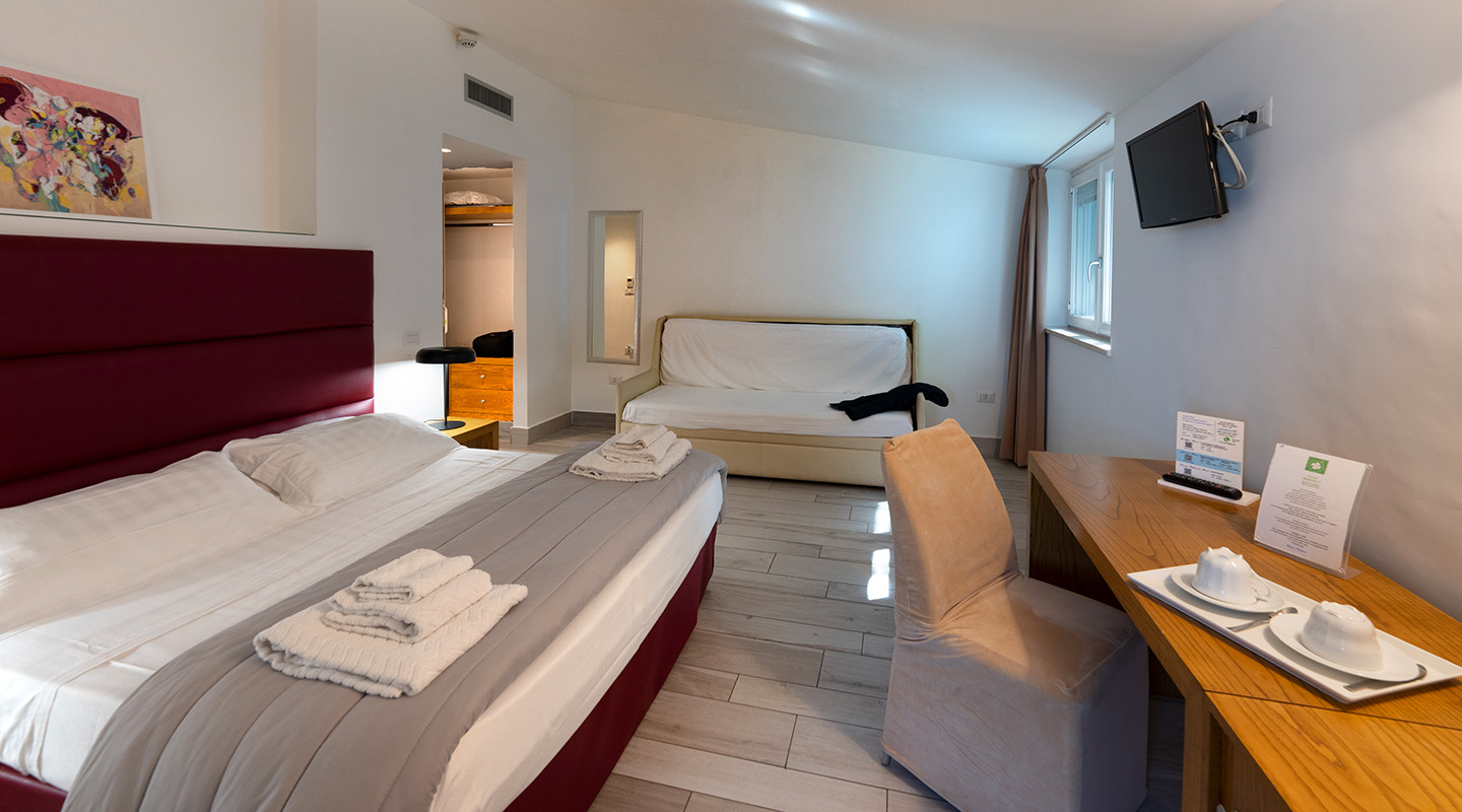 Enjoy the spacious comfort of a family-friendly room. Overlooking the serene gardens, this room offers an intimate and rejuvenating atmosphere, making it the perfect retreat for those seeking tranquility, nature, and extra space.