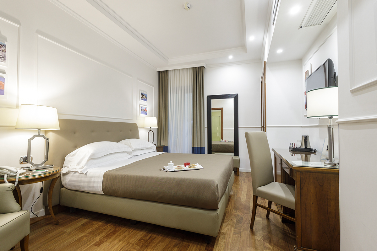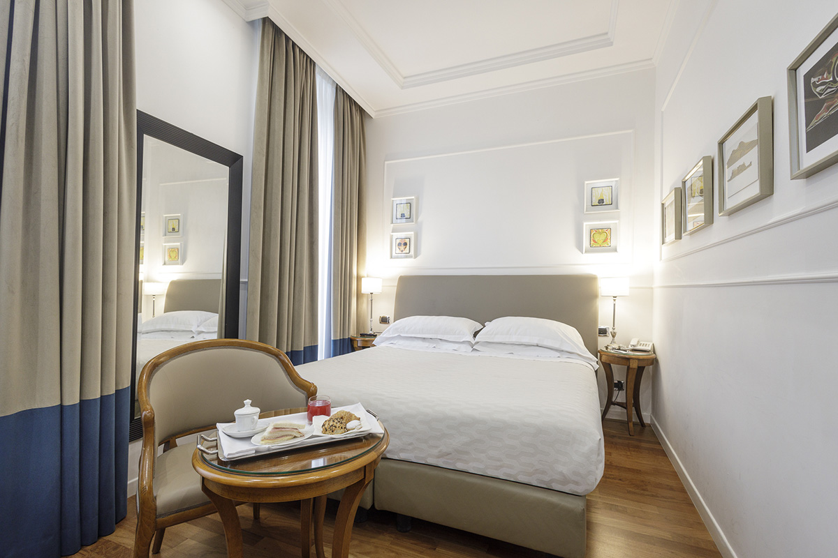 Tutte le camere sono dotate di: Wifi, Tv Sat, Aria condizionata, Frigobar, Telefono, Cassaforte. I servizi privati, sono dotati di doccia. Inoltre è possibile usufruire del Servizio in camera, Concierge 24 ore su 24, Servizio di lavanderia e stireria